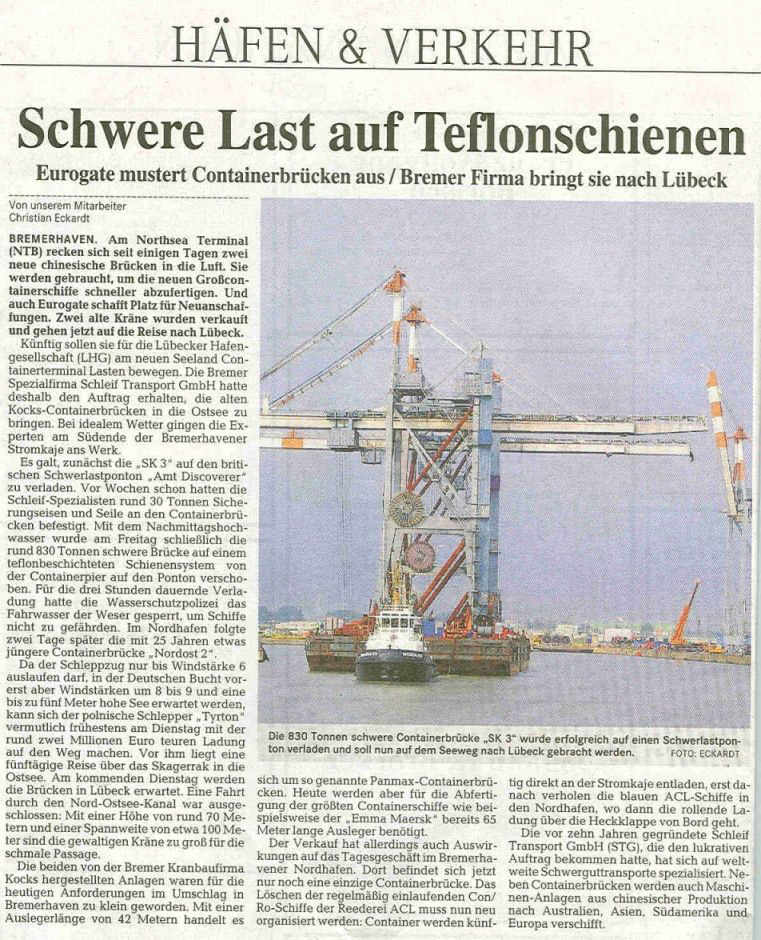 Reliable and qualified staff, many years of experience, innovative ideas and comprehensive “know how” in the field of shipping and forwarding combine to characterize Schleif Transport GmbH and make us an internationally competent and efficent partner in logistics. |